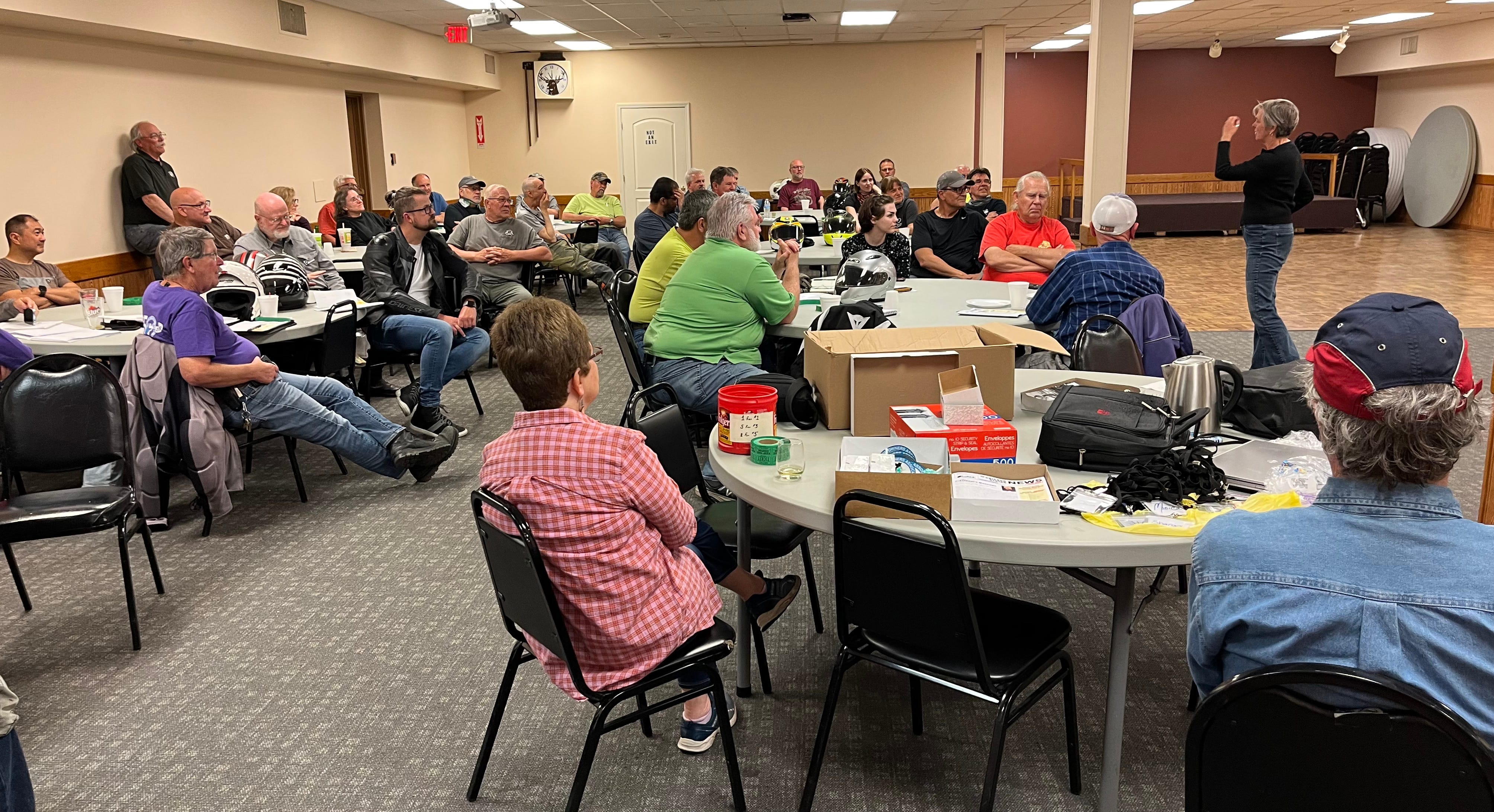 We arrived early at the parking lot of the Elmhurst Elks Club, their meeting headquarters. The building was near a busy intersection next to a liquor store and a storefront check-cashing business. Riders on all makes of BMWs started arriving. Judging by their gear, the bugs in their teeth—metaphorical and otherwise, their great bikes, and the ease with which they handled them—as if the motorcycles were extensions of their physical bodies, these were all experienced riders, some expert riders. The bikes ranged from vintage Airheads—iconic bikes from the late 60s—to new dual sports with fancy side cases and LED lights. The riders all knew one another greeting each other with jokes, back slaps, and handshakes.